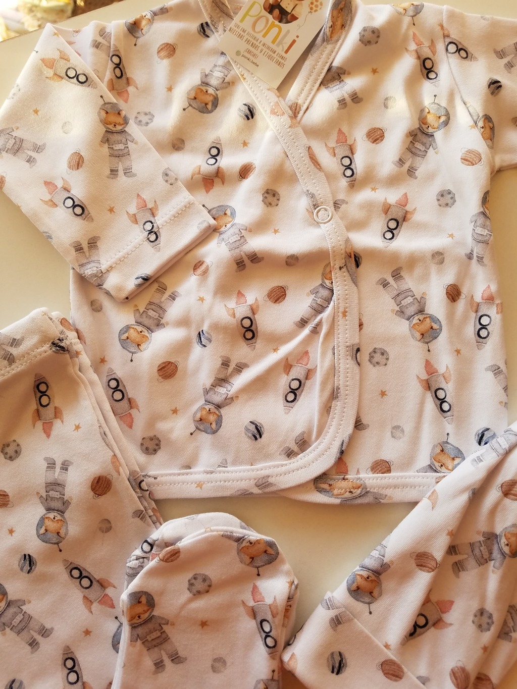 Set 3 piezas: body/batita estampado, ranita y gorro